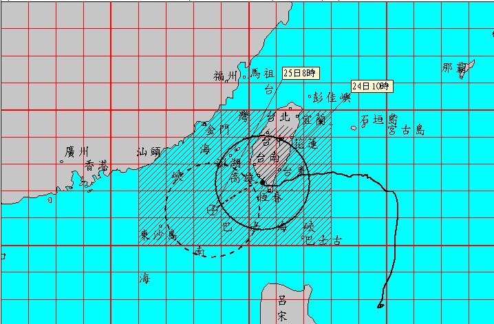 另外,過去3小時受地形影響,強度略為減弱,未來持續向西南西移動,氣象局預估最快24日今天傍晚就會解除陸上颱風警報。
