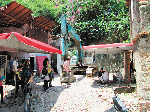鼓山老屋拆除,藍傑鴻阻擋。 (圖/陳宏瑞攝)