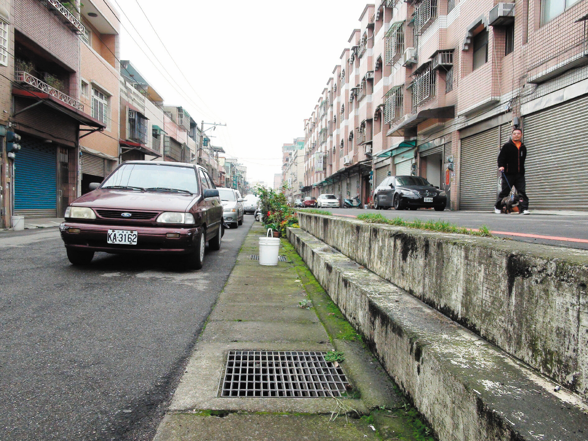 張姓住戶表示,龍川街目前是無尾路,一條15米寬計畫道路分左右兩條各7.5米道路,住戶們都已習慣了,馬路不拉平反而可以路邊停車、擺設花盆,住戶們以兩個階梯補足高低落差,馬路分兩邊,也可減緩來往車輛的速度與車流量,住戶們反而更清靜。