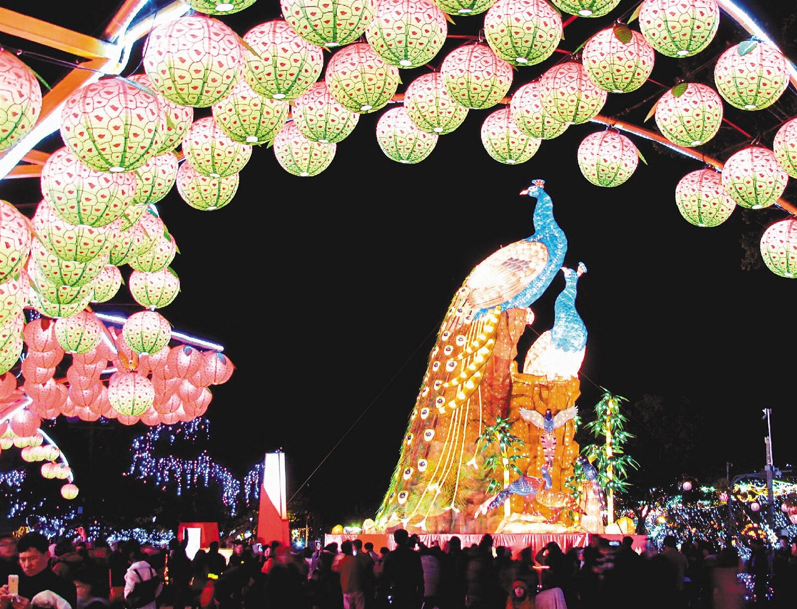 台灣燈會全區點亮後第一個周末假日吸引大批人潮湧入賞燈。(記者紀文禮/攝影)