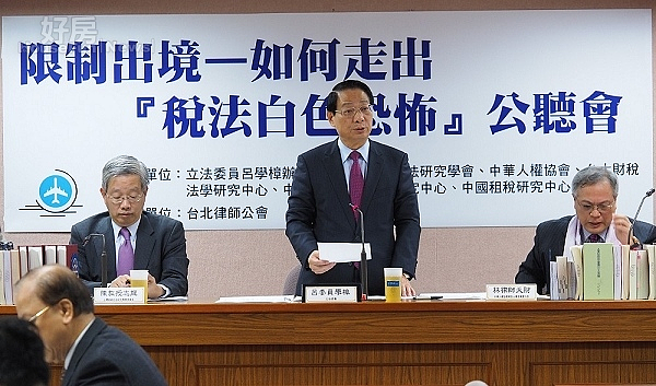 「賦稅比白色恐怖更恐怖!」台灣財經刑法研究學會理事長陳志龍教授指出,白色恐怖時代至少還有經過法院,稅法沒有經過法院就可以限制出境,違反憲法與兩公約。陳志龍談到台灣稅法權力過度集中,財政部相當於過去的警總,租稅立法、行政、司法全部都集中在財政部,他呼籲應該揚棄舊有的裹腳布,引進先進國家稅法制度與觀念,才能全面的改革提升。