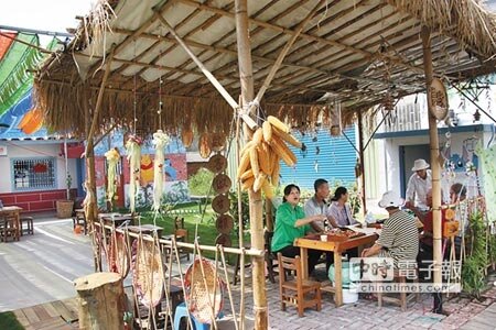 曾經廢棄的三合院旁搭起茅草屋,成為附近住戶聊天泡茶的好去處。