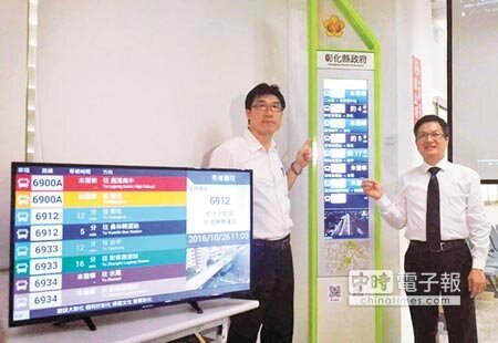 彰化縣政府為鼓勵縣民多搭公車,今年投入1123萬元,建置42座智慧站牌、10座多媒體資訊看板和公車動態查詢APP(android系統已建置,IOS申請中),讓候車族隨時掌握公車路線、班次等資訊,明年預計再投入3000多萬,讓縣內57條公車路線的站牌「智慧」升級。