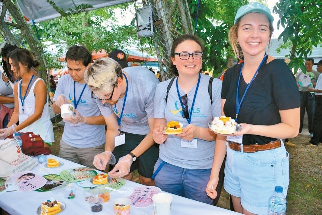 左鎮、玉井、楠西及南化是台南4大芒果產地,左鎮近年來與遠東科大合作研發芒果烘焙,昨天安排百人蛋糕裝飾活動,並有外籍學生擔任志工,體驗台南芒果的好味道。來自美國的安娜開心說,「台南芒果是我最愛的水果」。
