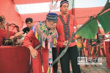 鎮門宮14日舉辦的和解法會儀式由無極鳳慈宮協辦,除了準備生肉、小米、檳榔、香菸等原住民祭祀供品,請來平埔族的「尪姨」(乩童)進行祭祀,在台南市副市長顏純左、台南市副議長郭信良的見證下,完成儀式。
