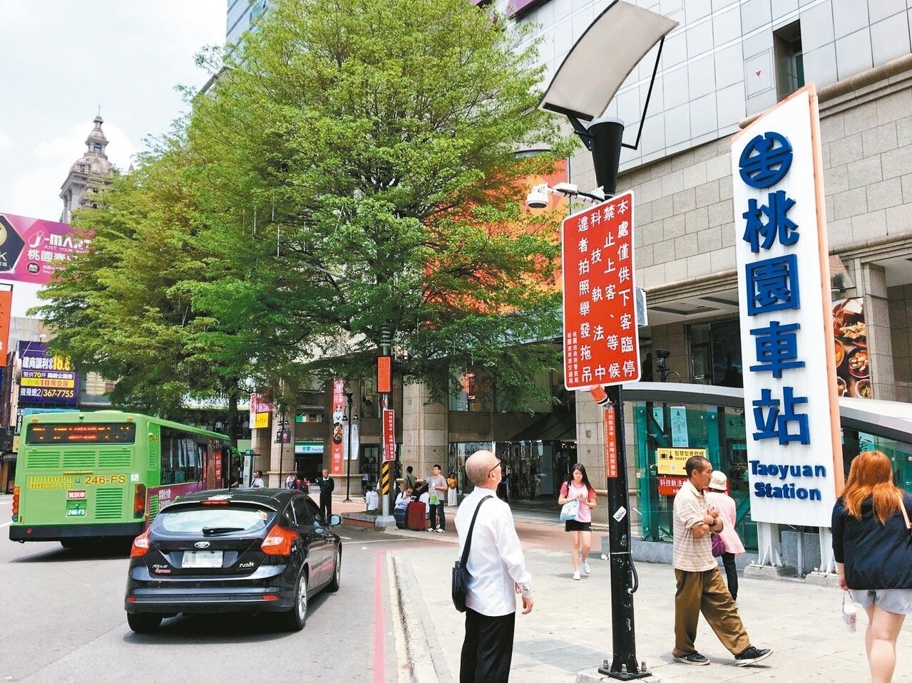 桃園市本月開始擴大科技執法,桃園火車站、中壢火車站、八德3處公車站停靠區,啟動智慧偵測系統,違停超過3分鐘就拍照開罰。 記者張裕珍/攝影