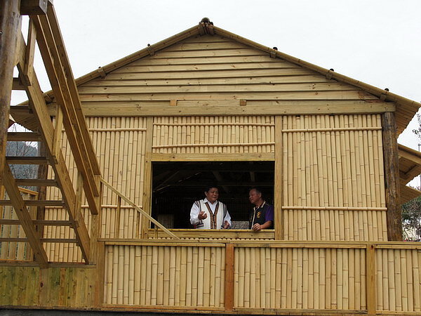 自由里雙崎部落花二個月時間,完成一棟泰雅傳統竹屋和瞭望台的搭建。(記者黃玉鼎攝)