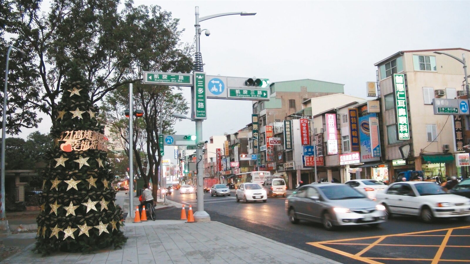 苓雅區三多路和凱旋路口,前天立起一棵聖誕,讓沉寂了5個多月的商圈添增節慶氛圍。氣爆後義務指揮災區交通的義交,將於今天撤崗。部分店家正常營業,但多數大型連鎖餐飲業包括拿坡里、丹丹漢堡、日式簡餐店都還是鐵門緊閉的情況。