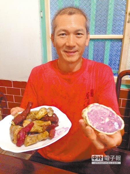 王建勳說,水林鄉目前種植的品種多為俗稱「黃金地瓜」的台農57號,為區隔市場,他今年初自花蓮友人引進「白皮紫心」地瓜,台灣市價每台斤在80至100元,價格是一般有機地瓜的1倍,極具發展潛力。