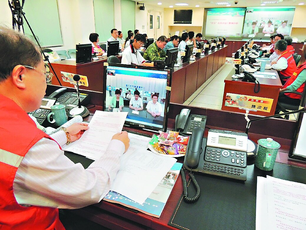 金門昨天災防演練,廈門氣象局首度視訊參與,縣長李沃士左藉此掌握即時氣象資訊指揮相關防災、救災工作。(記者陳向鑫/攝影)