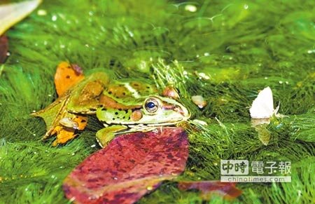 布農部落休閒農場小水塘裡的水草間,冒出1隻隻青蛙頭,陽光照射下,翠綠色的蛙身益顯耀眼,牠們是好久不見的金線蛙,正在做森林認證工作的台東大學教授劉炯錫興奮說,以後要帶同學來這裡上課,讓學生了解什麼叫有機生態。