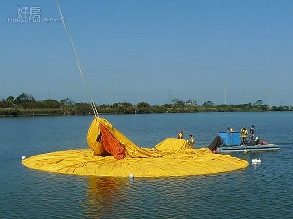 活動進入第14天,依據氣象達人彭啟明的預估,星期五下半天開始天氣回穩,平均風力為2級,是小鴨充氣下水的理想環境,主辦單位把握時間從早上8時進行小鴨充氣前置作業,在8日中午12時左右,完成黃色小鴨充氣作業,小鴨成功重回陂塘悠遊,。下午1時正式開放民眾上陂岸賞小鴨,剎那間就吸引萬人觀賞。