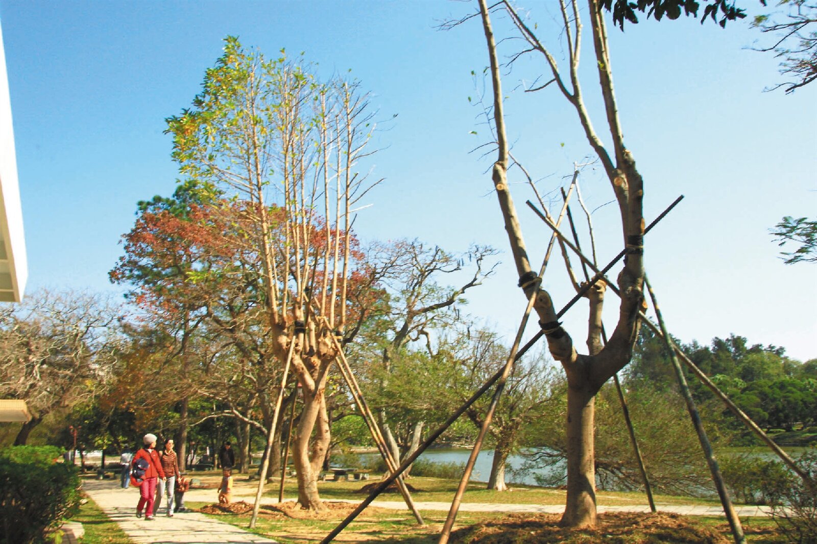 湯家和黃家在眷村是鄰居,老樹搬到清華大學湖畔,仍是「老鄰居」。(記者郭政芬/攝影)