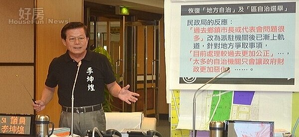 李坤煌質疑,市府進行永康都市計畫第4次通盤檢討,關於第一(二王)公墓部分,將住宅區劃設在尚未遷葬之墓地上,死人一遷出,就要活人遷入,有人敢住嗎?原來「體二」用地上所有問題如何解決?而且永康三處慢速壘球場全部不見了?當地二王、三合、五王等3個里活動中心土地哪裡找?他要求,第一公墓區段徵收,住宅區配置應以原週邊農業區、公共設施用地,以及至少已遷葬10年以上之土地來劃設;「體二」納入區段徵收範圍內;忠孝運動公園設施,含慢壘球場應劃設在體育場用地內;體育場用地應規劃為體育園區;同時,應劃設二王里、三合里、五王里活動中心用地。