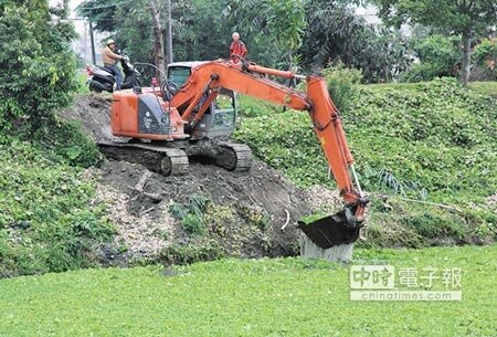 為了因應即將到來的汛期,宜蘭縣政府陸續進行各河川清淤工程,除此之外,令人傷透腦筋的河面布袋蓮問題,也定期雇工以怪手撈除,避免阻礙水流、影響閘門功能。(簡榮輝攝)