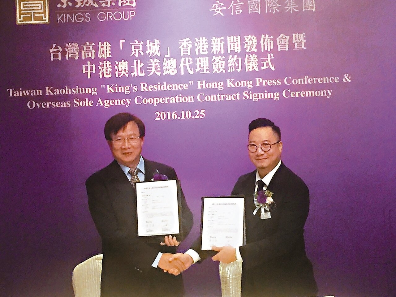 高雄指標建商京城(2524)昨(25)日與香港安信集團簽約,授權安信集團取得總銷150億元豪宅「京城」建案的中、港、澳門以及北美銷售總代理,每坪均價78萬元,不僅是高雄建案海外銷售首例,同時改寫高雄房市最高價紀錄。