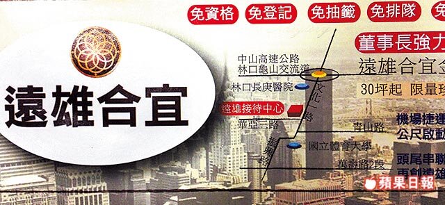 不過《蘋果》發現,最近遠雄房地產已開始寄發「遠雄合宜」傳單,打著「免資格」、「免登記」、「免抽籤」、「免排隊」、「免轉售限制」文宣,銷售「遠雄合宜」店面。遠雄房地產銷售人員直言,該案住宅由政府主導,店面則可先行參觀帶看,每坪開價60~70萬元。