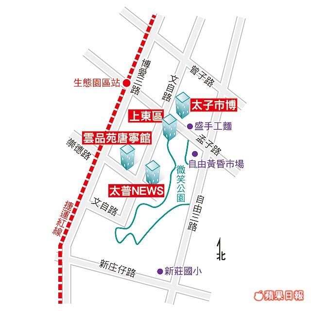 ◎博愛三路、孟子路口有捷運紅線生態園區站