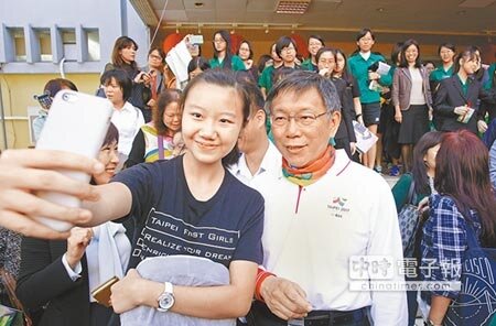 台北市長柯文哲昨參加北一女113周年校慶活動,他說,這是他首次踏進北一女,女兒雖就讀北一女,但未見到面,還好北一女同學熱烈歡迎他,大批粉絲搶著與他合照、簽名,讓他能多停留並逛逛北一女校園。