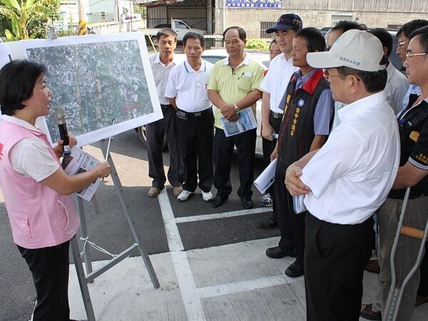 立委楊瓊瓔(左一)邀集相關單位人員現勘,達成興闢潭子區外圍截水道除水患的共識。(記者李智誠攝)
