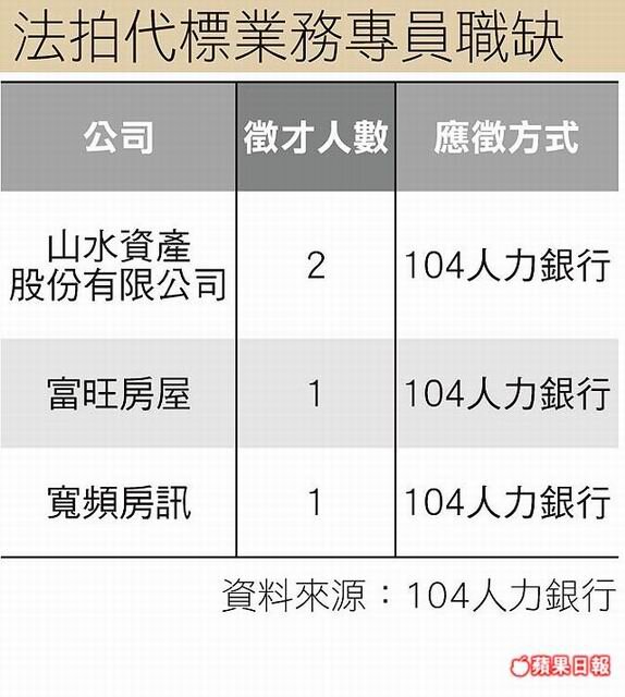 ★工作內容:法拍代標人員專門接受委託,協助客戶標購法拍屋,在標購前代標人員會協助民眾了解欲標購物件的現況,環境、機能,並提供標價參考,與一般房屋仲介工作內容類似。最大不同是法拍物件無法直接進入室內帶看