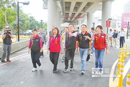 新竹市長許明財(右三)3日宣布公道五內灣支線橋下便道正式通車,往來竹北、竹科,平均可縮短10分鐘車程。