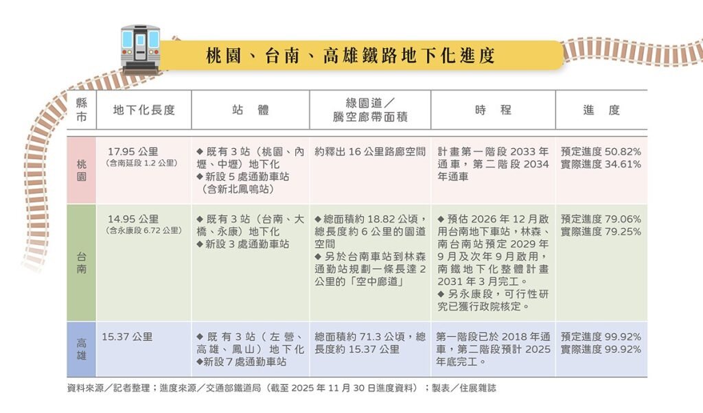 這樣的場景不只出現在桃園。鐵路地下化,正在多座城市同步推進,只是進度與承受的代價各不相同。
