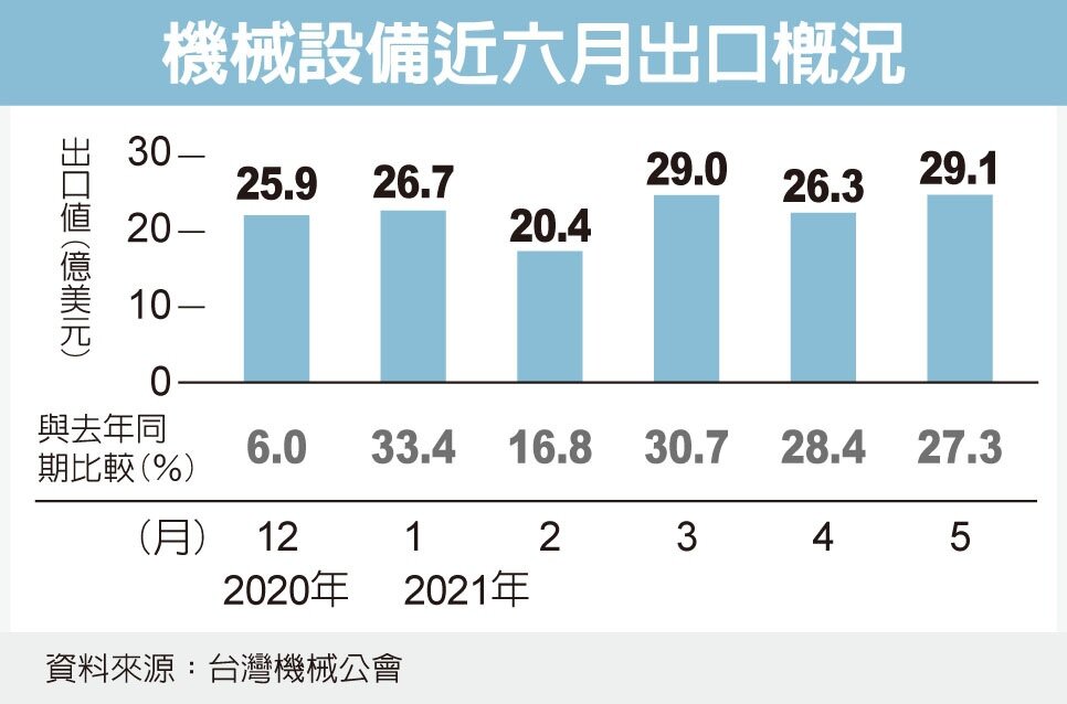 機械設備已連續五個月出口皆為兩位數增長