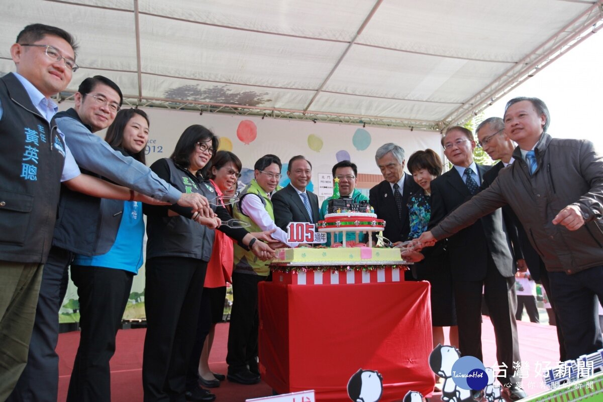 阿里山森林鐵路105歲了!為慶祝這條國寶級登山鐵道長久以來的貢獻與文化意義,24日林務局嘉義林管處在北門驛舉辦阿里山森林鐵路105週年慶祝活動,農委會主委林聰賢、林務局副局長楊宏志、嘉義市市長涂醒哲、嘉義縣副縣長吳芳銘、立法委員李俊俋、臺鐵局阿里山森林鐵路管理處簡信立組長等貴賓出席這場盛會,與阿里山森林鐵路締結長達32年姊妹鐵道友誼的日本大井川鐵道8位嘉賓,更遠道前來祝賀,為活動增添風采。現場有限量紀念車票及戳章、活動專屬商品與臨時郵局之設立,吸引眾多鐵道迷朝聖。