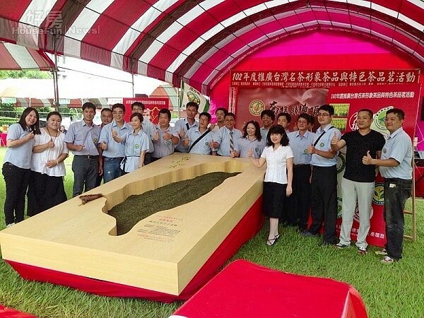 為推廣南投縣在地生產好茶,南投縣凍頂茶業發展協會在農委會農糧署及南投縣政府的輔導下,日前在行政院中部聯合服務中心(黎明新村)前草坪區展開2天的「102年度推廣台灣名茶形象與特色茶品茗活動」,並邀請現場嘉賓一同製作長達336公分、寬168公分台灣形狀的全台最大茶餅,共同為「台灣人支持台灣茶」簽名連署活動,期藉此提高消費者對台灣茶業的支持與信心。