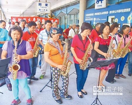 配合台鐵128周年慶,屏東火車站昨天也推出系列活動,除有屏東市民組成「康康樂樂薩克斯風樂團」,在現場演出《車站》、《快樂的出帆》等火車相關組曲,現場也展出老照片,包括現在車站剛啟用時情形,充滿濃濃迎新懷舊氛圍。