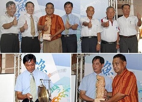 漁業署組長繆自昌、宜蘭縣政府秘書長陳鑫益與農業處長林順發,以及頭城區漁會理事長林民讚、總幹事鄭讚福、全國模範漁民陳正郎等人,4日在縣府大廳宣布今年活動內容,邀請民眾參加漁民節盛會。