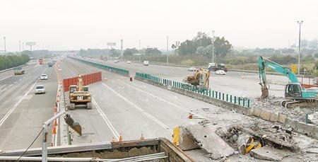 國道因拆除收費站而封閉雙向數個車道,用路人通過施工區時要特別小心。(記者林文煌/攝影)