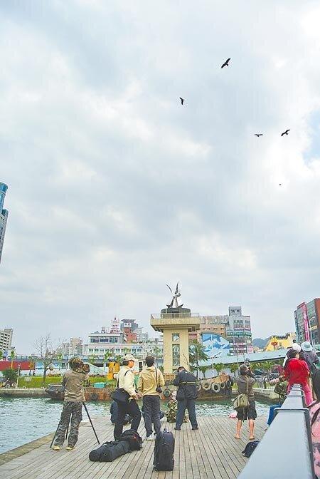 昨天基隆天氣不錯,民眾都在海洋廣場上賞海景,不過更多拿著專業相機的攝影老手,聚集在廣場上拍攝老鷹。基隆鳥會總幹事沈錦豐表示,這類老鷹學名為「黑鳶」,除了在空中盤旋外,還會不時俯衝海面,攫取海面上的腐食等祭五臟廟,這樣的畫面吸引來自各地的鳥友猛按快門。
