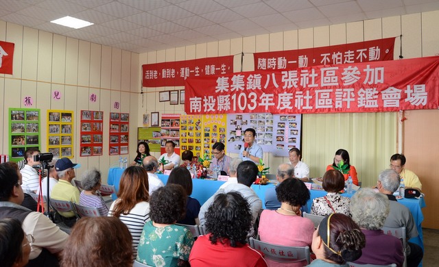 南投縣社區評鑑11日在社會處長林榮森帶領下,前往集集鎮八張社區進行實地評鑑。社區安排六人大花鼓熱鬧迎賓,也安排社區蕉兒劇場、媽媽土風舞與排舞等精彩表演,充分展現出社區發展歷史與志工活力的一面。