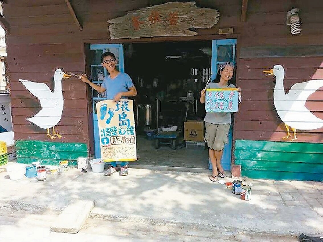 走到林邊鄉,這對情侶正打算搭帳篷夜宿警察局前,仁和村長盧麗美邀他們返家留宿,隔天許漢柏為社區彩繪兩隻大鴨,推廣當地特色產業,成了吸引遊客的地標彩繪。