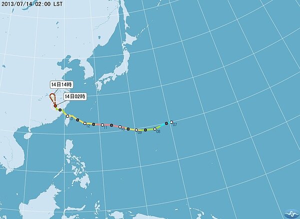 依據中央氣象局資料表示,路徑直撲台灣的中度颱風「蘇力」,於13早8時由新竹出海,向西北移動,暴風圈仍籠罩臺灣,以每小時24公里之速度行進,桃園縣仍持續列為超大豪雨警戒區。