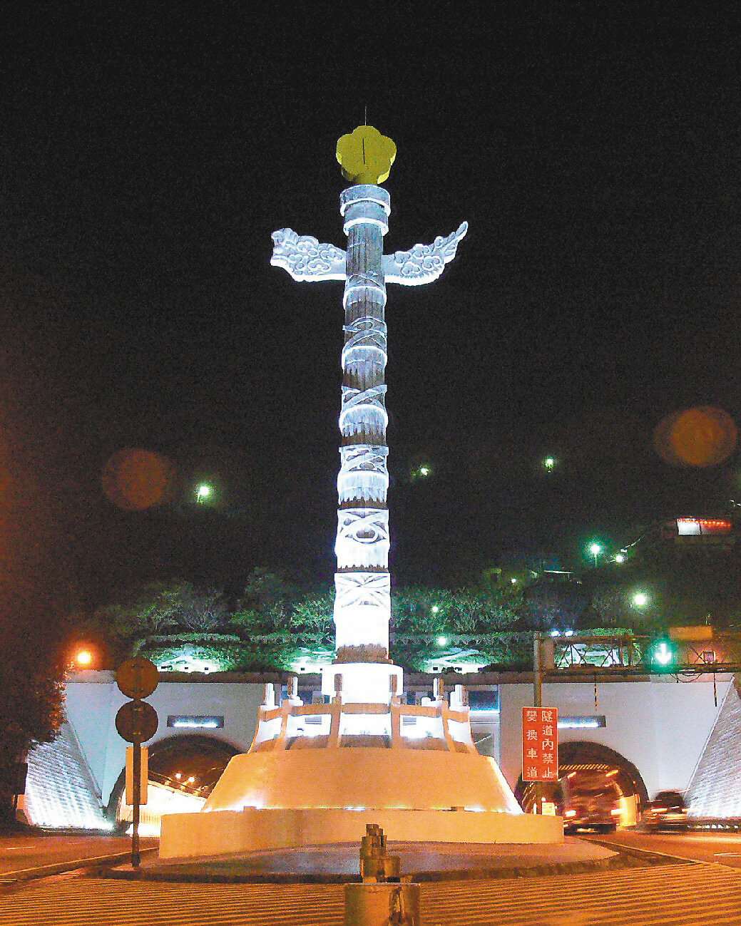 高公局北區工程處斥資300多萬元,在中山高基隆端安裝夜間照明設備,入夜後用燈光投射華表柱體和隧道口的高公局局徽、文字和隧道口的牆面。