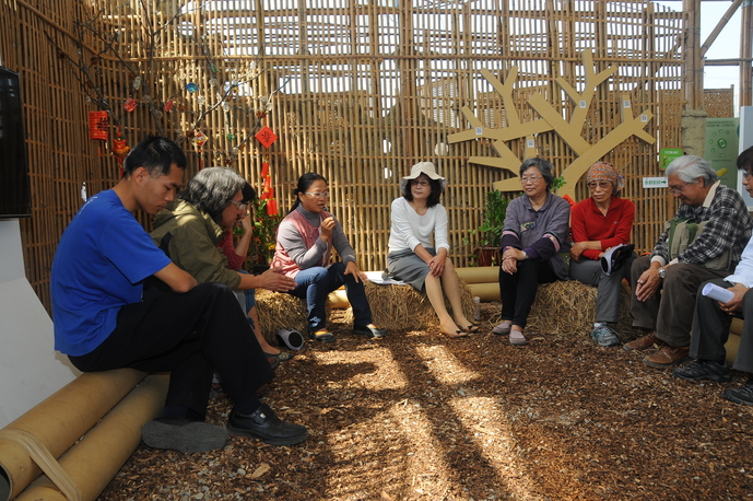 來自台東志工柯育英,也以「換工、互助」方式,正在台東興建土角厝,重溫土角厝感動,柯育英指出,自然工法建築最環保,讓人、土地及環境自然的融合,對土地省思最佳教材。