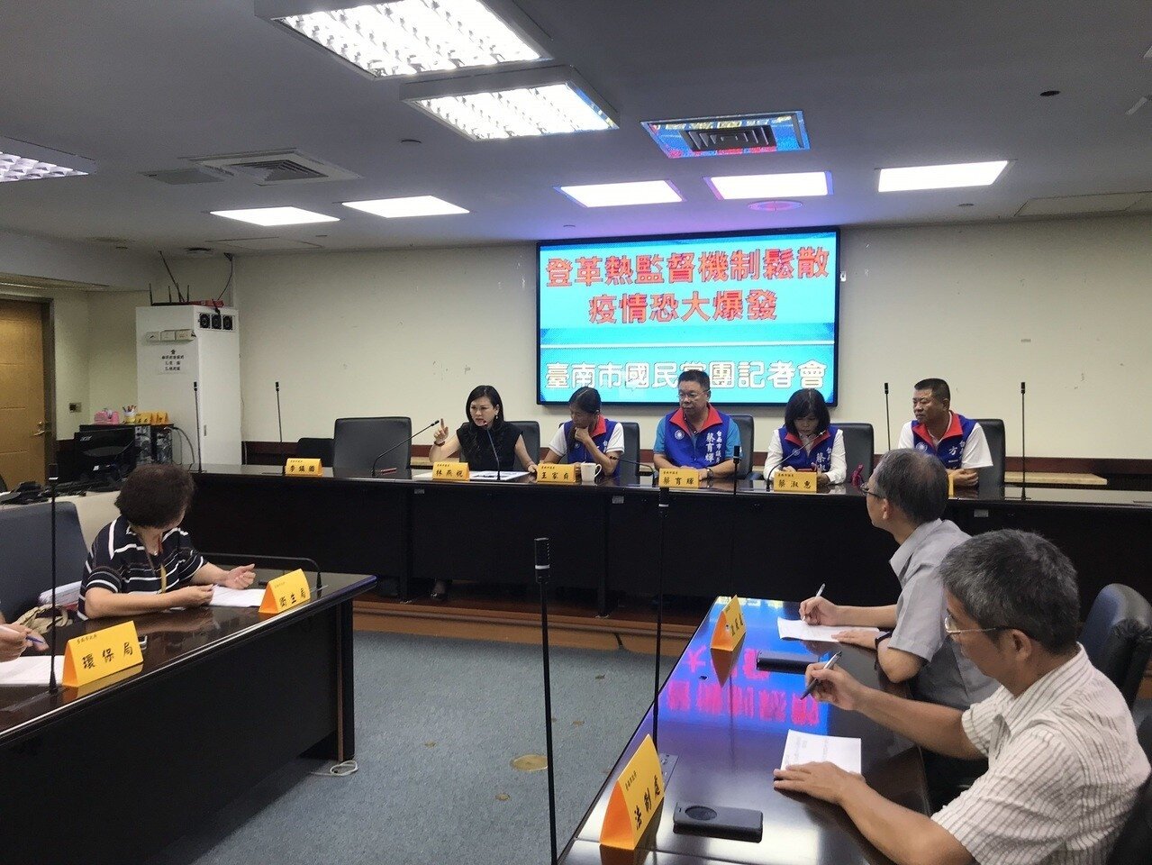 台南市議會國民黨團昨天召開記者會,質疑台南市政府登革熱監督機制鬆散。(記者鄭維真/攝影)