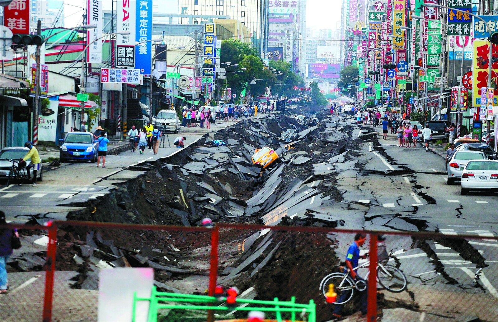 高雄大氣爆,造成一心一路全面塌陷。(記者劉學聖/攝影)