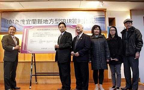 宜蘭縣政府辦理101年度地方型「中小企業創新研發〔SBIR〕」計畫,共有5大類產業、34家業者獲得補助,19日由縣長林聰賢與業界代表在縣府完成簽約,總經費1600萬元,補助執行期限1年,希望能藉此促進地方產業升級。