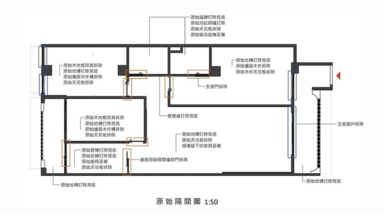 Paul指出,客戶當初在討論配置過程中,設計師建議隔間牆不需要動,因為打除都是錢,並一再強調「老屋裝修」基本上都是花在看不到的基礎建設上。客戶也補充,屋子剛好臨近馬路所以噪音一直是困擾,這次剛好把鋁門窗全部更新5mm+5mm膠合玻璃。