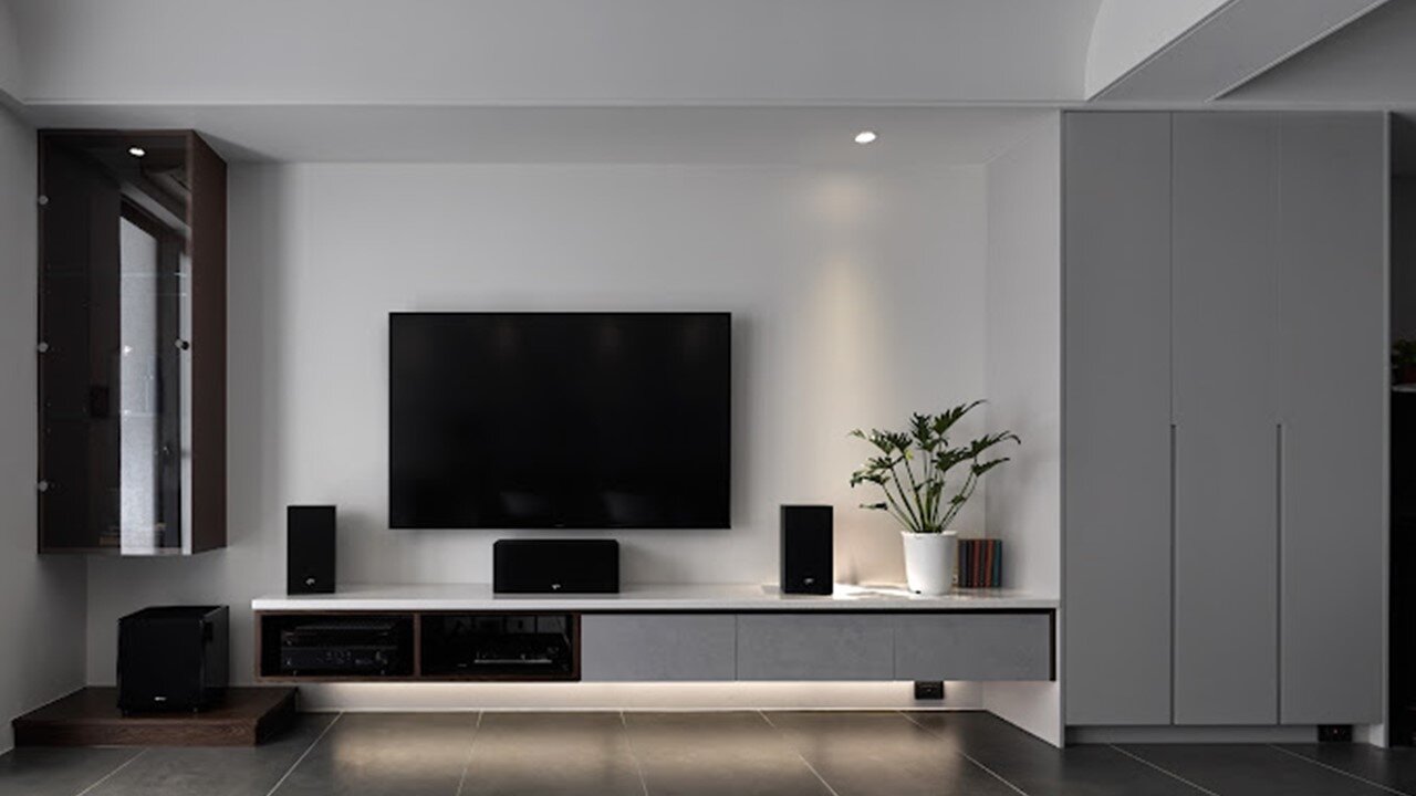客戶表示,因為家裡想要有家庭劇院音響,設計師推薦陪同去試聽挑選,CP值真的也蠻高的,沙發天花板上面裝兩顆崁入喇叭,看電影那音效真的有震撼到。原有的實木沙發丟了可惜,設計師做了高密度泡棉椅墊去合沙發,真的很好坐。