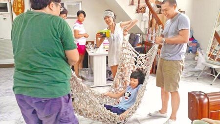 廢物利用廢棄紙經過員工巧手編織,變成吊床、窗簾與椅墊等物品。(記者程炳璋/攝影)