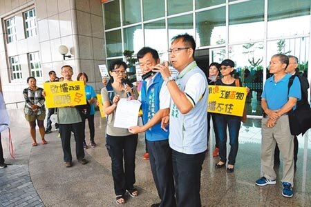 環保團體到台東縣議會表達反對啟用焚化廠,縣議會祕書長吳慶榮接受陳情書。(莊哲權攝)