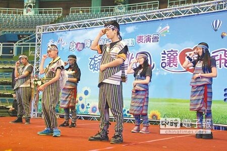 第3屆身心障礙國民暨親子運動表演會14日在桃園縣立巨蛋體育館登場,逾2千名師生與家長參與,規模更勝以往,其中復興鄉介壽國中因人數不足,無法參加趣味競賽,但師生10人仍在早上7點準時從學校出發,只為了能將練習3周的泰雅手語舞蹈,獻給大家。