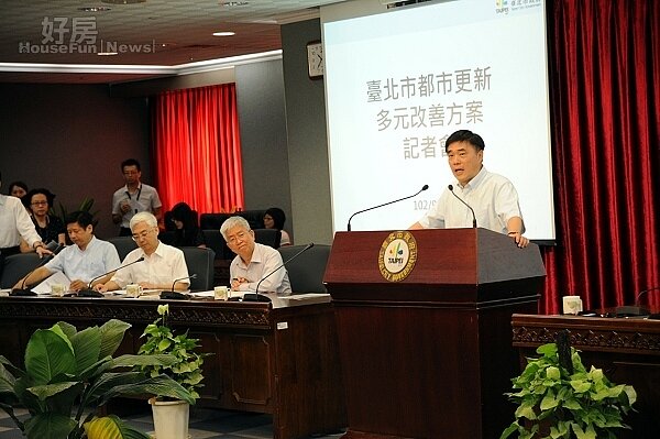 台北市有許多4、5層樓的老舊公寓沒有電梯、停車場,周邊巷弄陰暗狹小,對許多高齡長者來說相當不便,郝龍斌表示,因此在3年前,市府開始推動4、5層老舊公寓更新,如今已經有具體成果,但是還有很多個案,因為產權複雜、整合困難,行政程序又耗時,需要改善。