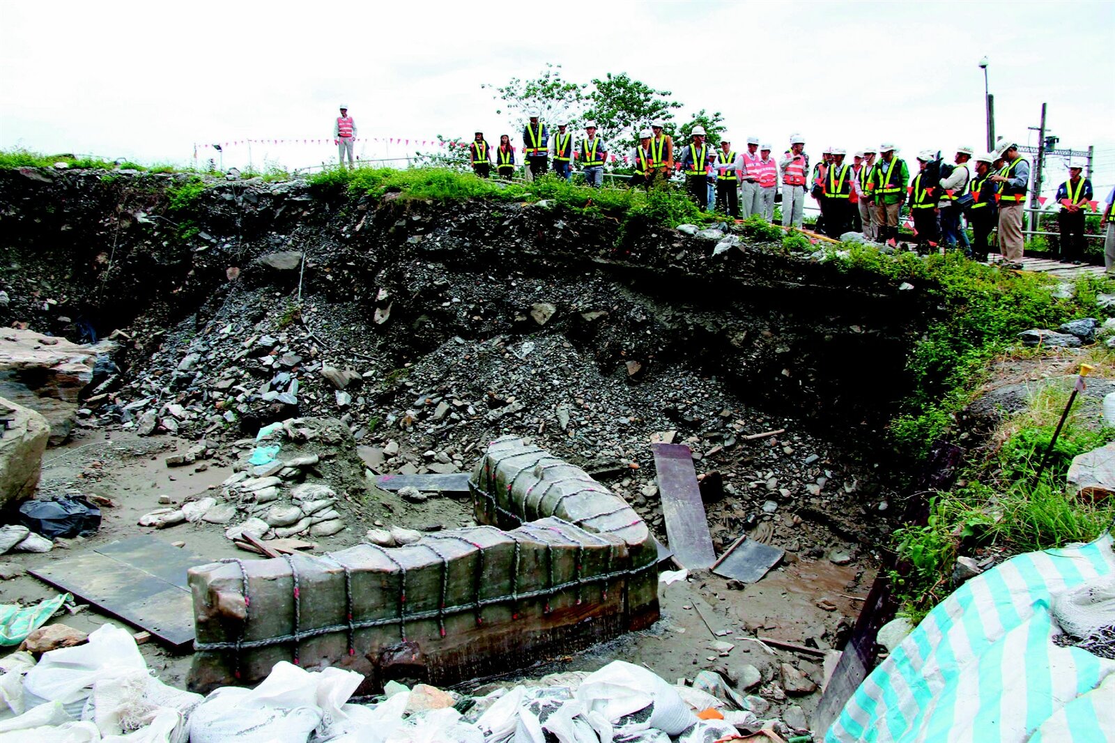 宜蘭縣文化局確認遺址,去年9月谷風隧道南口工程暫停工,分段施工,讓考古人員搶救漢本遺址,考古坑旁就是施工便道,工程車輛來回奔波,形成文化保存與國家建設並行的有趣對比。