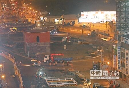 昨早在北市副市長林欽榮一聲令下,工人開始動手拆除「金鐘罩」防護架,直到中午12時左右,1884年興建的紅磚瓦北門風華再現,優雅聳立在台北街頭。行車時間多3至5分鐘忠孝橋引道自除夕凌晨開始拆除,工程進度大幅超前,目前已超過90%,林欽榮說,計畫14日完成的拆除工程提早2天完工,周六上午8時路面鋪設完畢就可恢復通車。